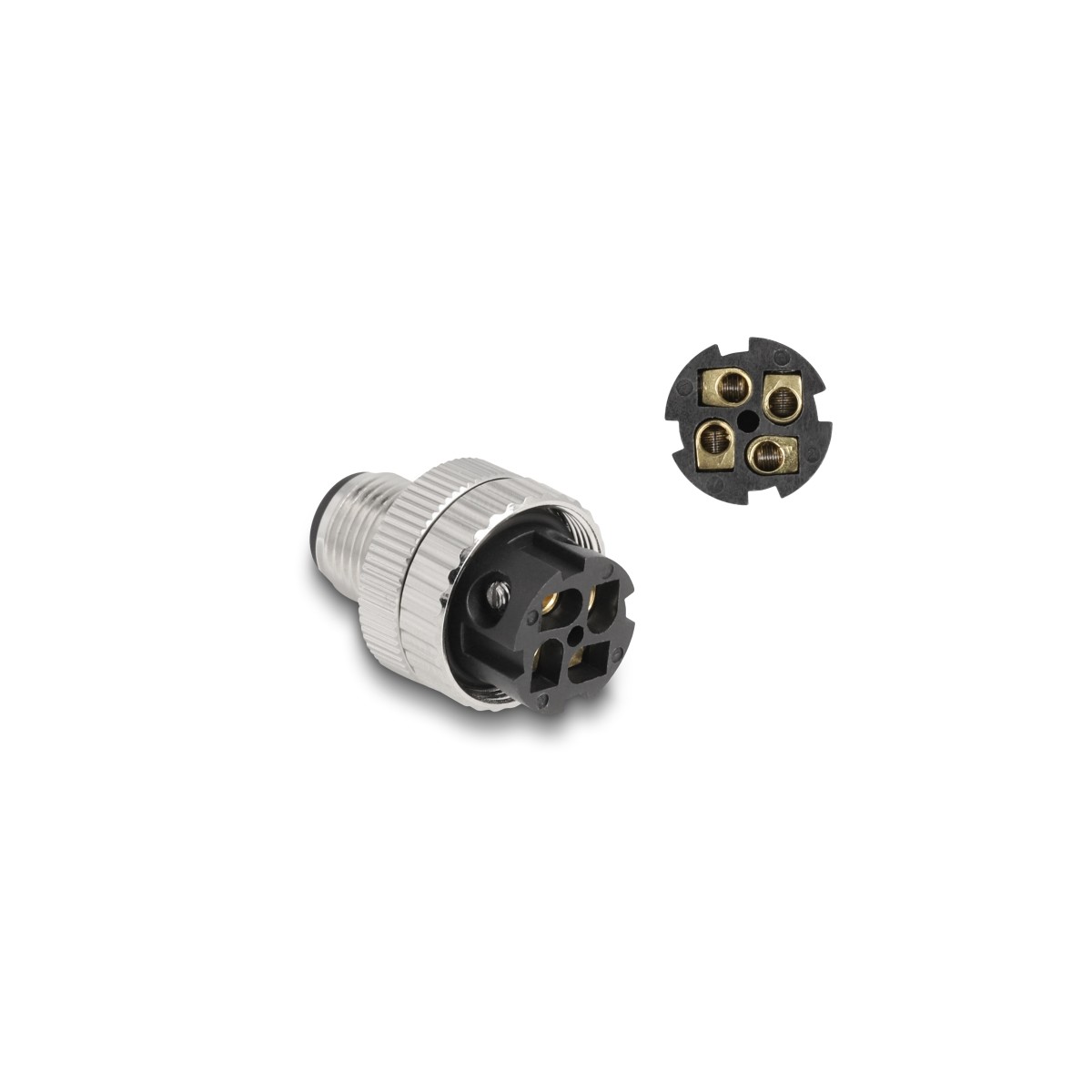 This connector by Delock can be used to connect a cable via a screw terminal connection with an M12 connector, e.g. for machine control or automation.