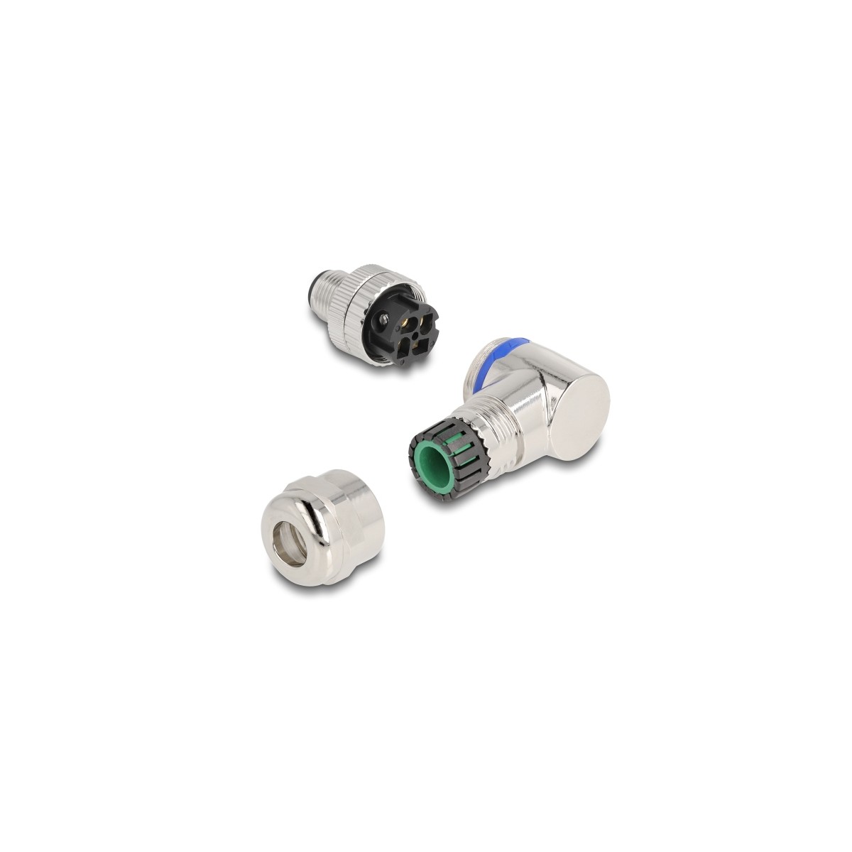 Delock M12 Connector A-coded 4 pin male for mounting with screw connection 90° angled metal