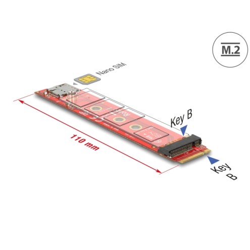 Delock Adapter M.2 key B male M.2 key B slot port saver + Nano SIM slot