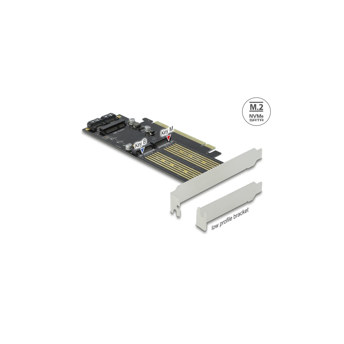 Delock PCI Express x16 Card to 1 x M.2 Key B + 1 x NVMe M.2 Key M + 1 x mSATA - Low Profile Form Factor