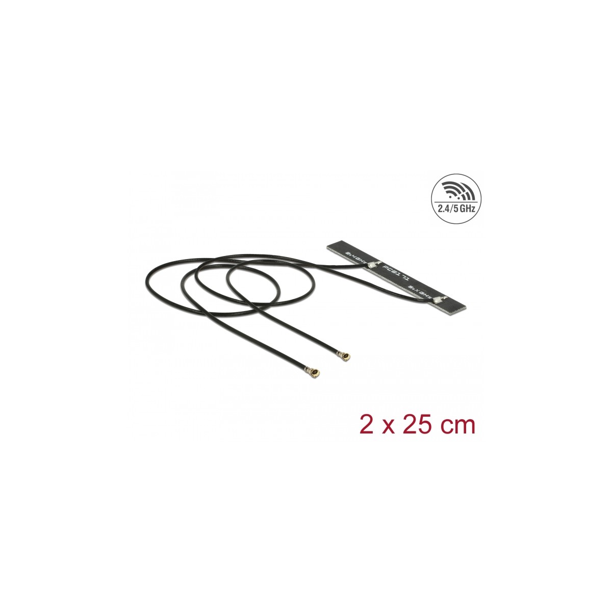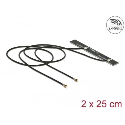 Delock Dual Band WLAN WiFi 6 Twin Antenna 2 x I-PEX Inc., MHF® 4L plug 5 dBi 2 x 25 cm PCB internal self adhesive