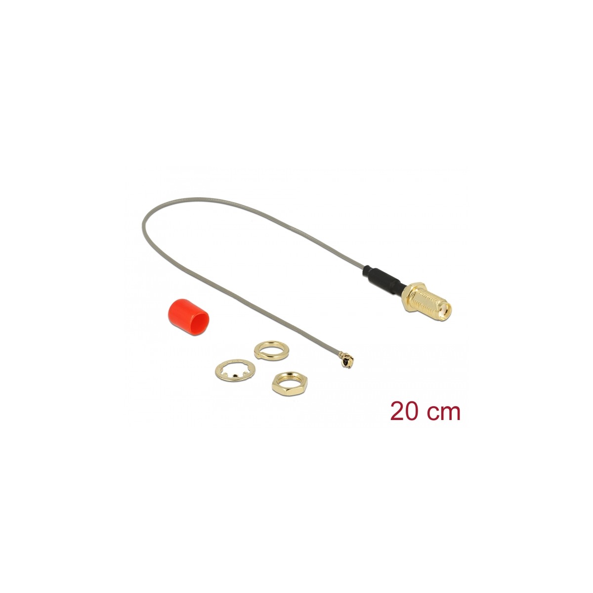 Delock Antenna Cable SMA jack bulkhead ferrite core to I-PEX Inc., MHF® I plug 1.13 20 cm thread length 10 mm