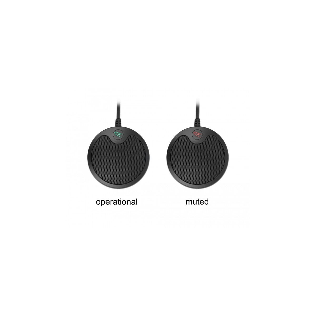 The touch mute button quickly mutes the microphone. The LED is red when muted and green when recording.
