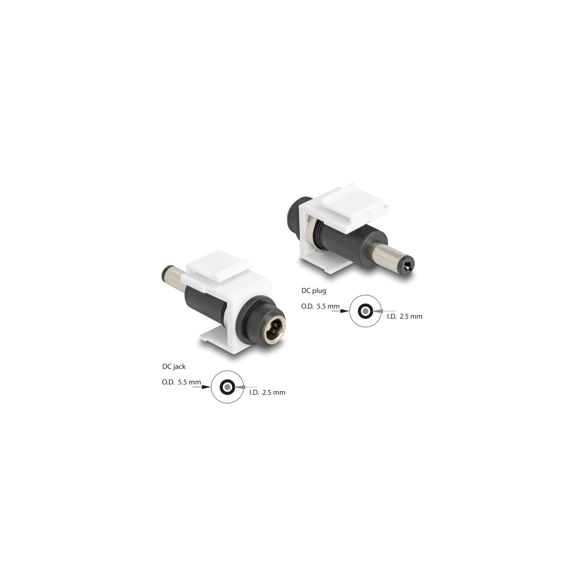Delock Keystone Module DC 5.5 x 2.5 mm female to DC 5.5 x 2.5 mm male white