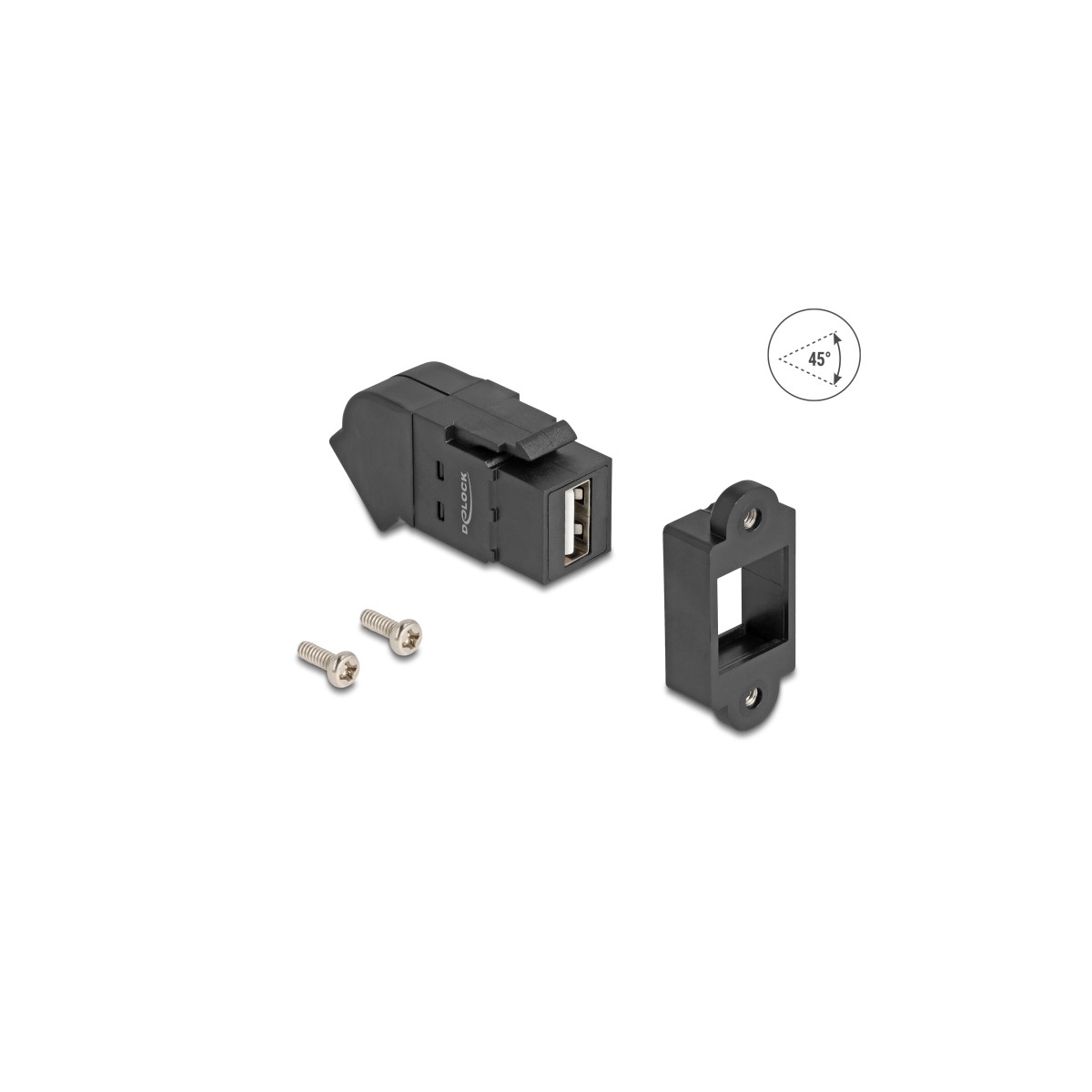 Delock Keystone Module USB 2.0 Type-A panel mount female to Type-A female 45° angled black