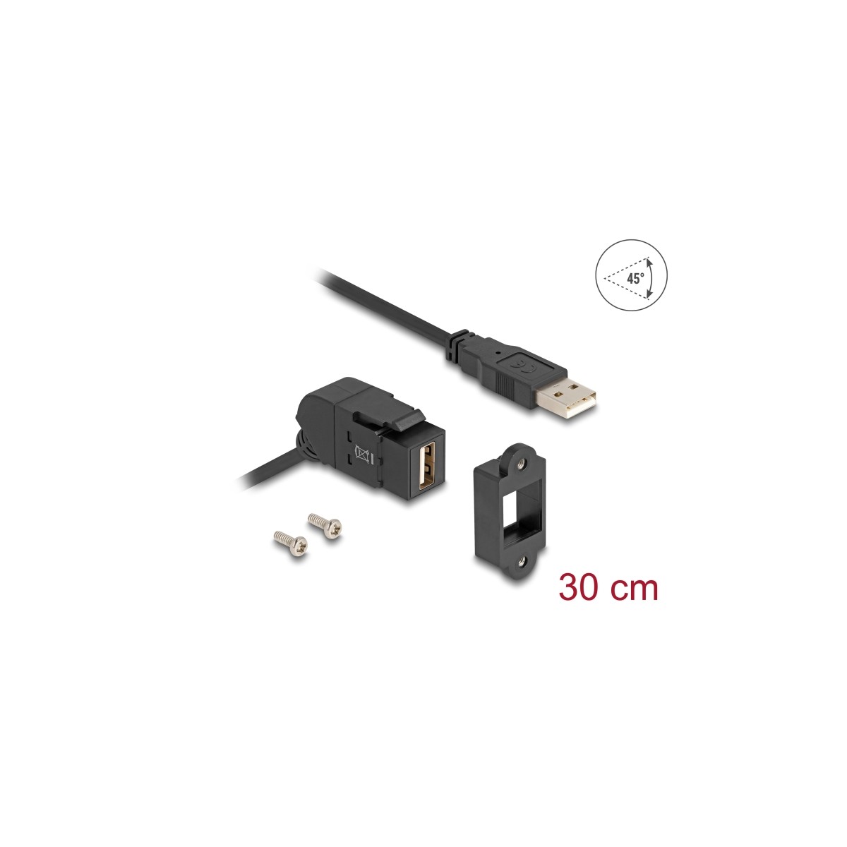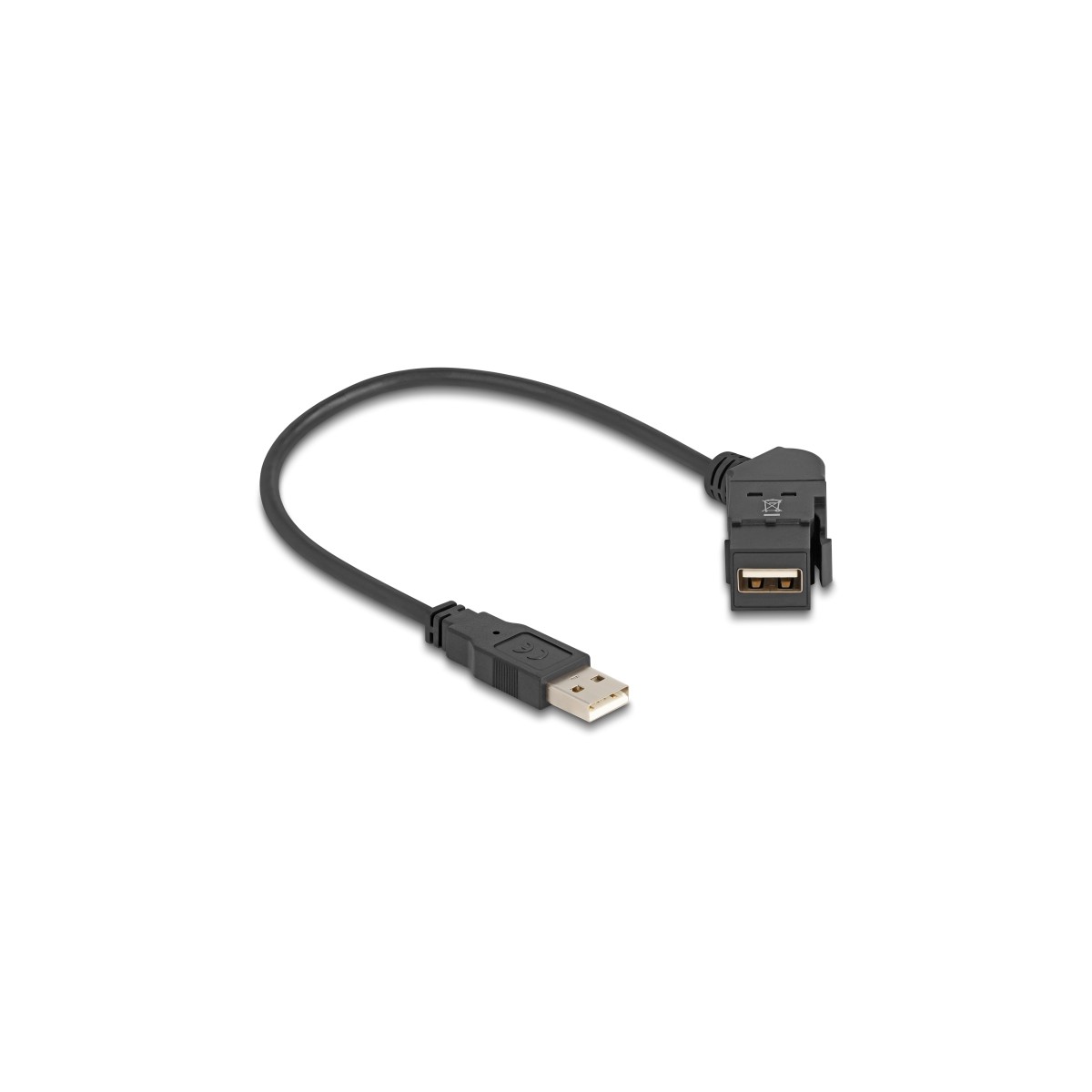Delock Keystone Module USB 2.0 Type-A panel mount female 45° angled to Type-A male with 30 cm cable black