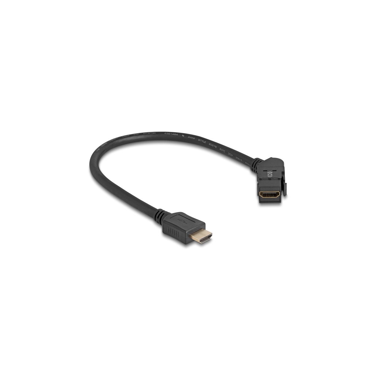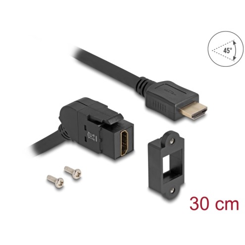 Delock Keystone Module HDMI panel mount female 45° angled to HDMI male with 30 cm cable 8K 60 Hz black