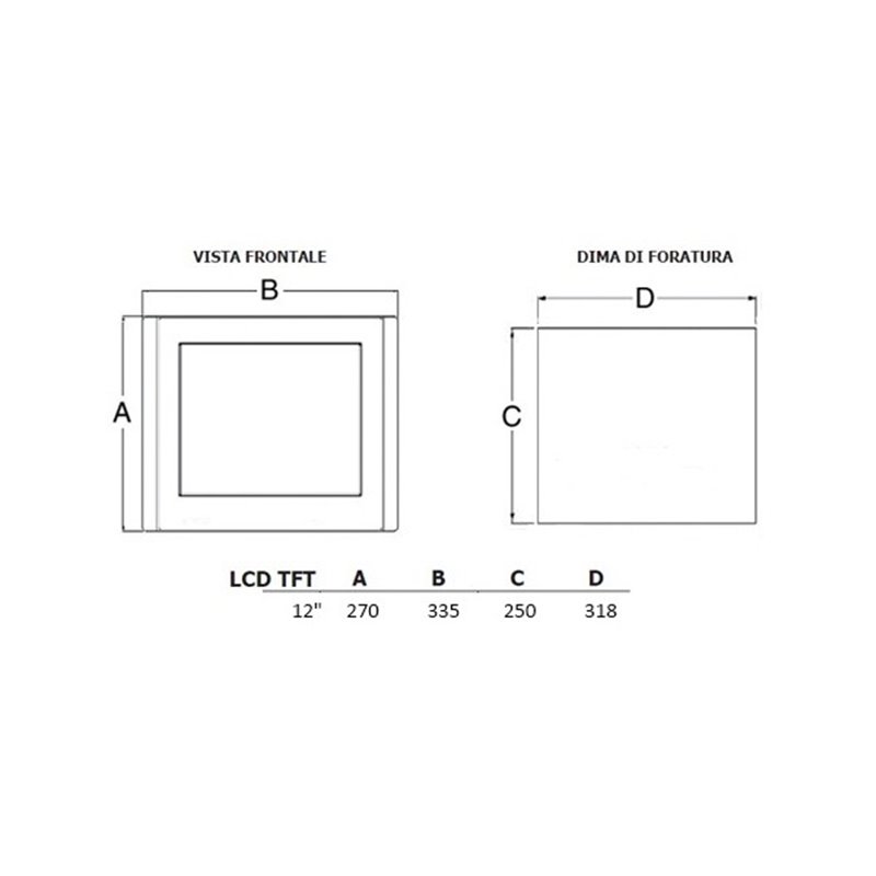 Monitor 12" 4:3 da pannello ad incasso frontale, IP65, con touchscreen resistivo (su richiesta anche senza touch)