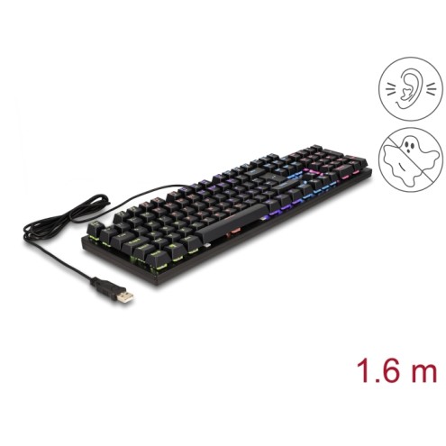 Delock Mechanical USB Gaming Keyboard wired 1.6 m black with RGB illumination