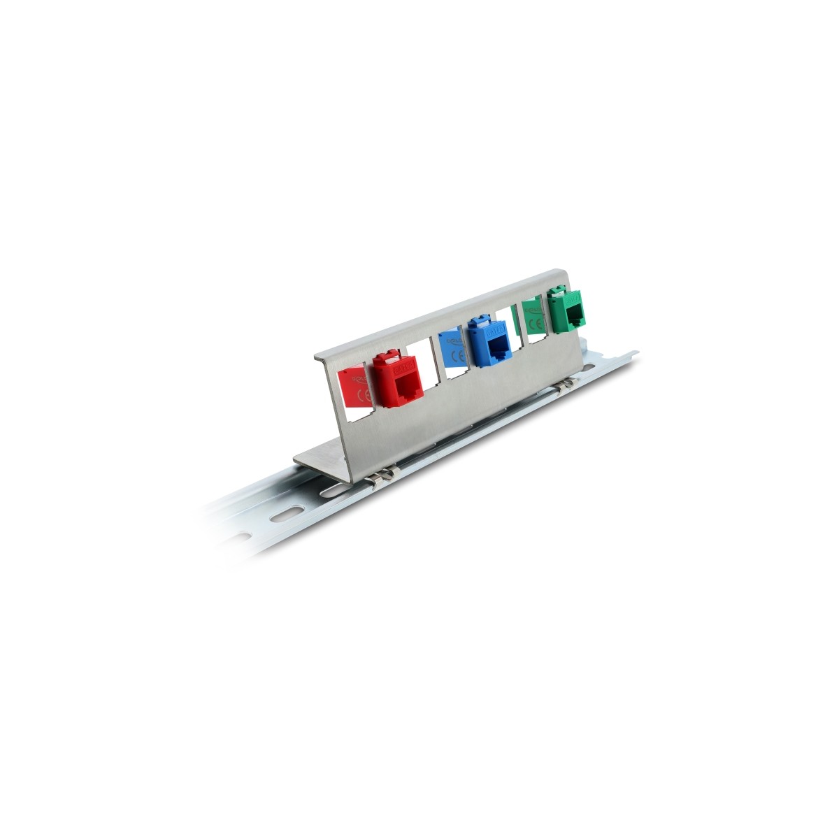 This Keystone holder by Delock can be mounted to a 35 mm DIN rail. With its standardized dimensions, it is suitable for easy snap-in mounting of 8 Keystone modules.