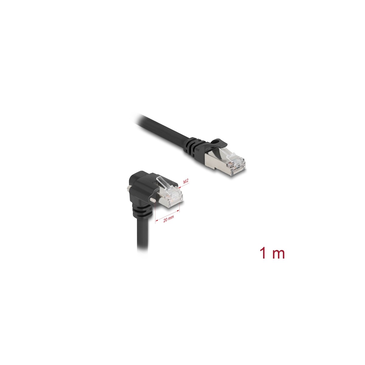 Delock GigE Kamera Cable RJ45 plug 90° angled with screws to RJ45 plug Cat.6 S/FTP 1 m black