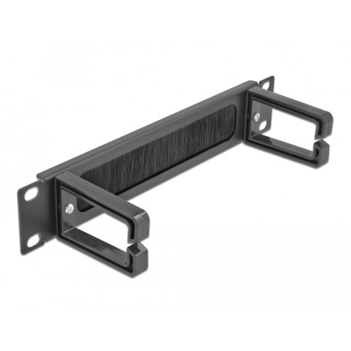 Delock 10″ Cable Management Brush Strip with 2 hooks 1U black