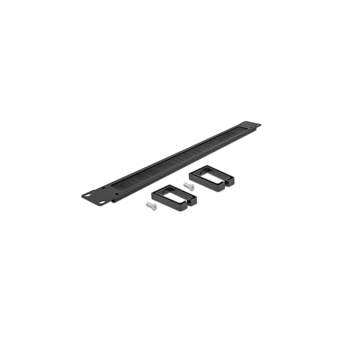 Delock 19″ Cable Management Brush Strip with 2 hooks 1U black
