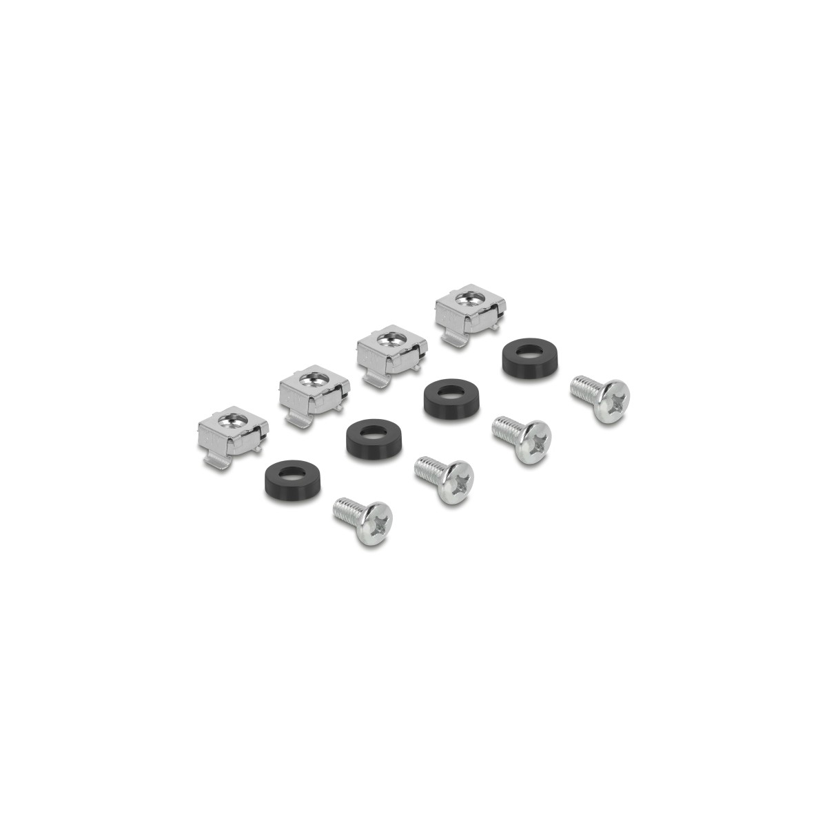 This cable management panel by Delock can be mounted in a 19″ rack. With the solid metal D-ring hooks the patch cords can be neatly routed horizontally.