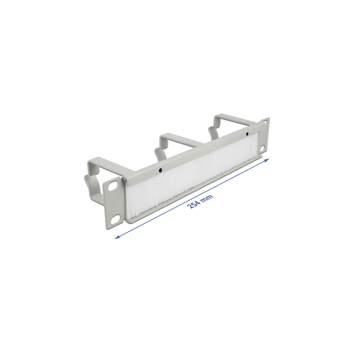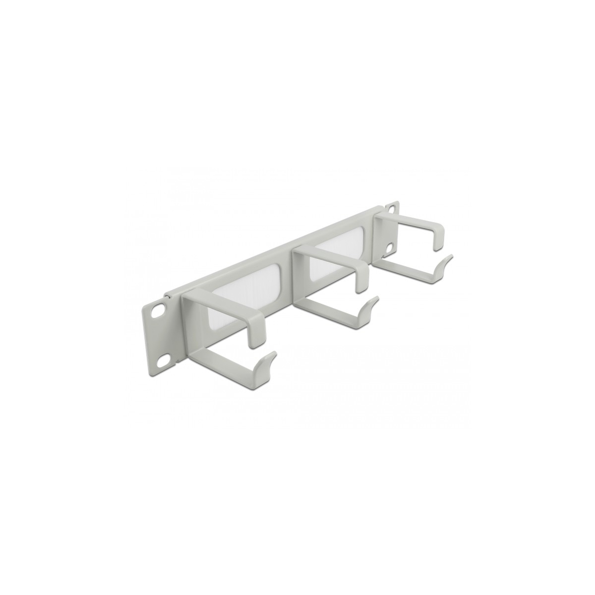 Delock 10″ Cable Management Brush Strip with 3 hooks 1U grey