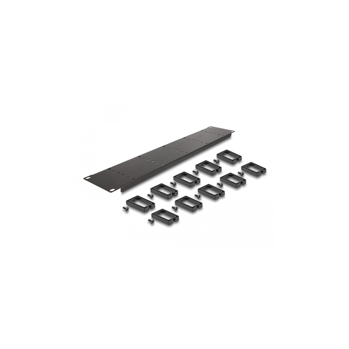 Delock 19″ Cable Management Routing Panel with 10 plastic hooks 2U black