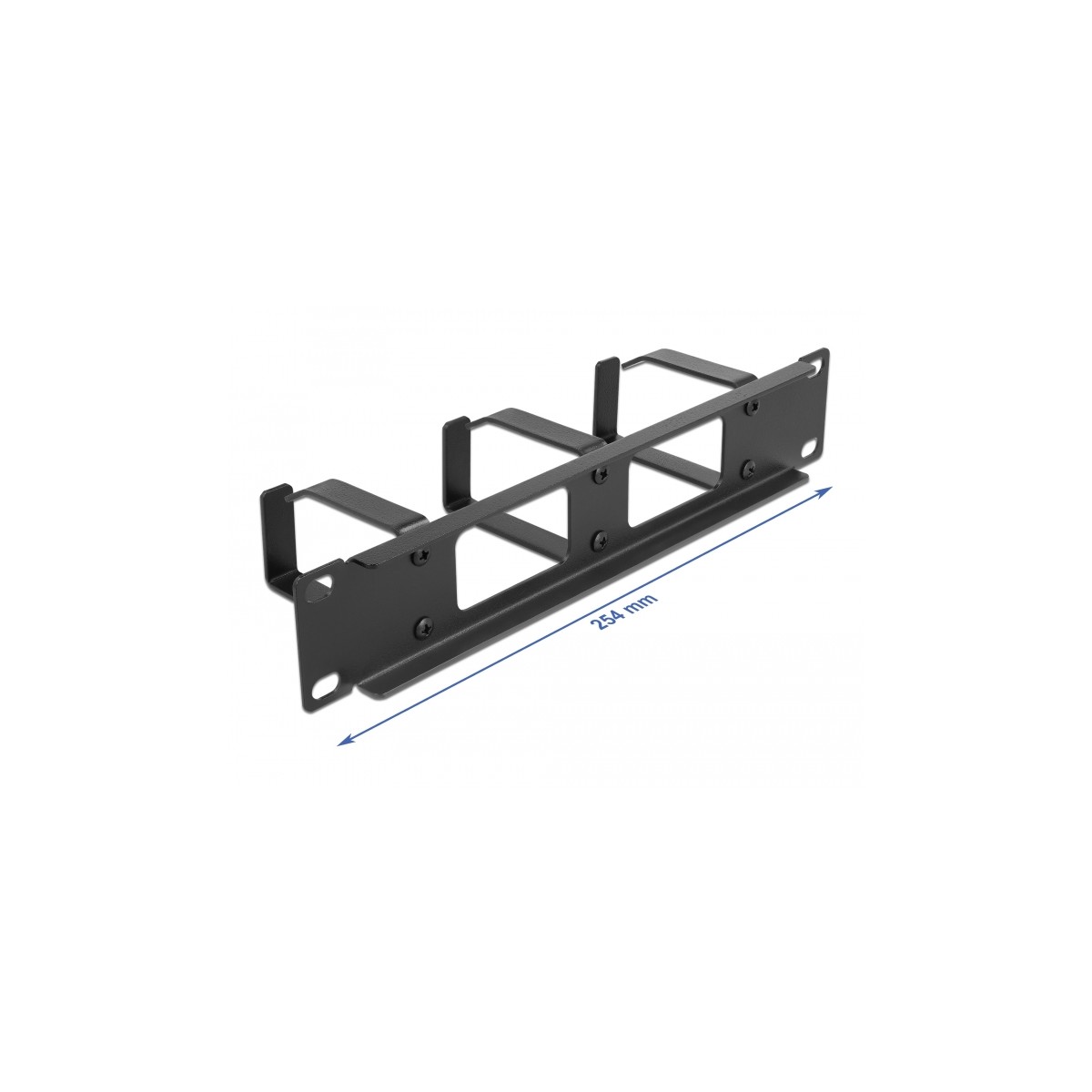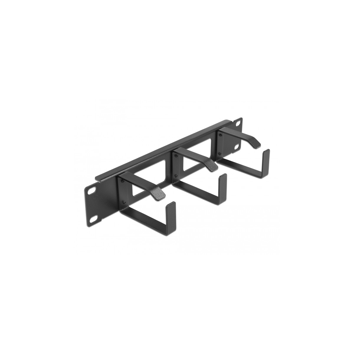Delock 10″ Cable Management Routing Panel with 2 openings and 3 hooks 1U black