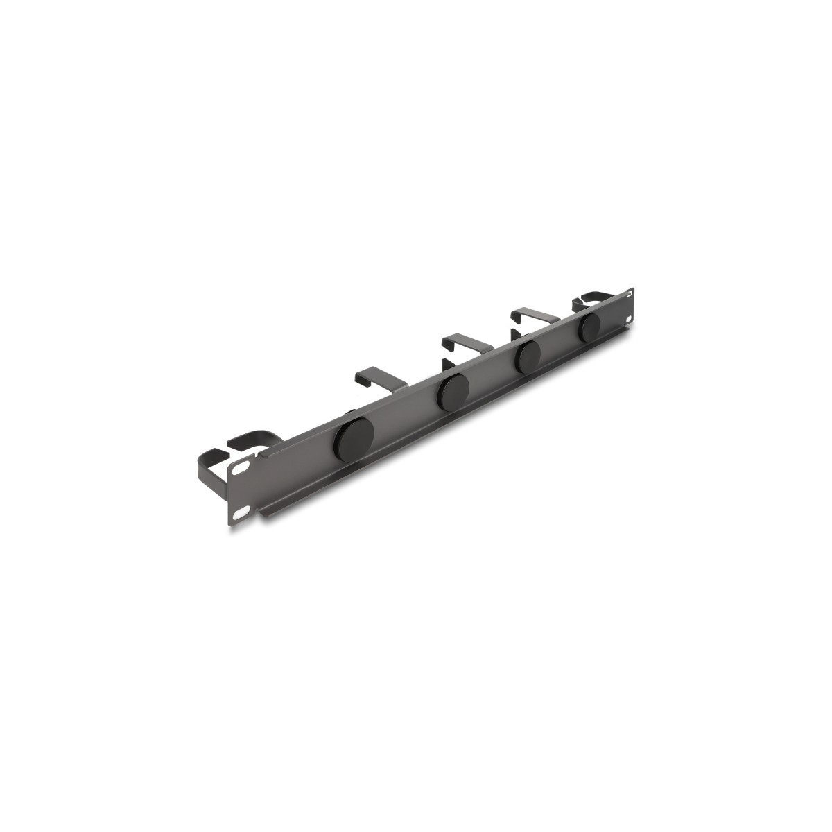 Delock 19″ Cable Management Routing Panel with 4 rubber cable entries and 5 metal hooks 1U dark grey