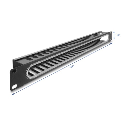 This routing panel by Delock is ideal for proper cable routing in 19″ racks or cabinets. It enables efficient and structured cable organisation, protects the cables from damage and ensures clean installation.