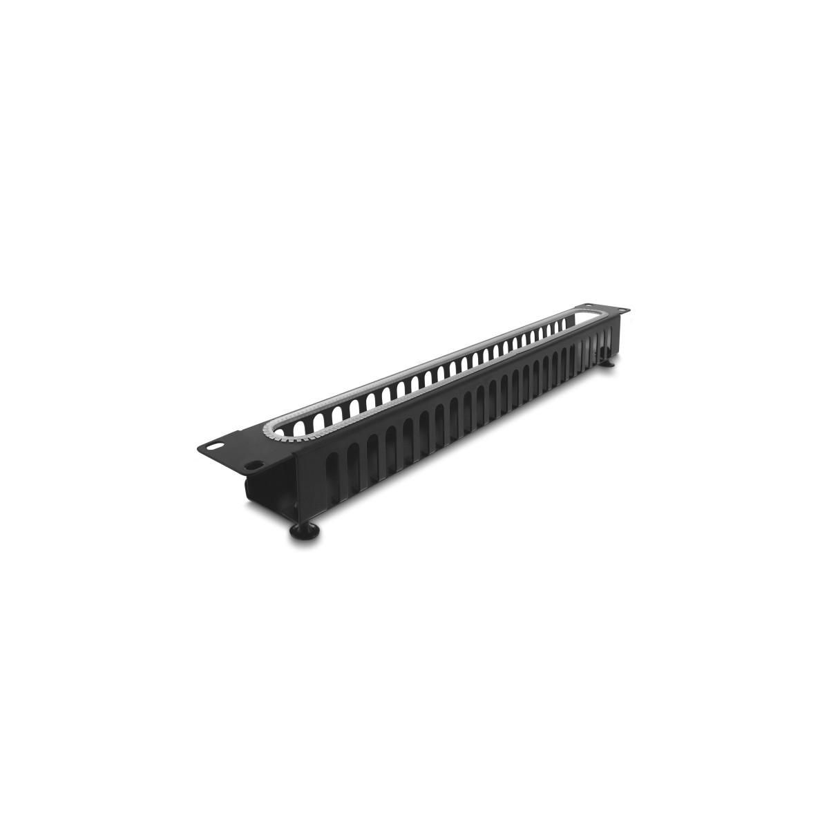 Delock 19″ 1U Cable Management Routing Panel with opening and edge protection black