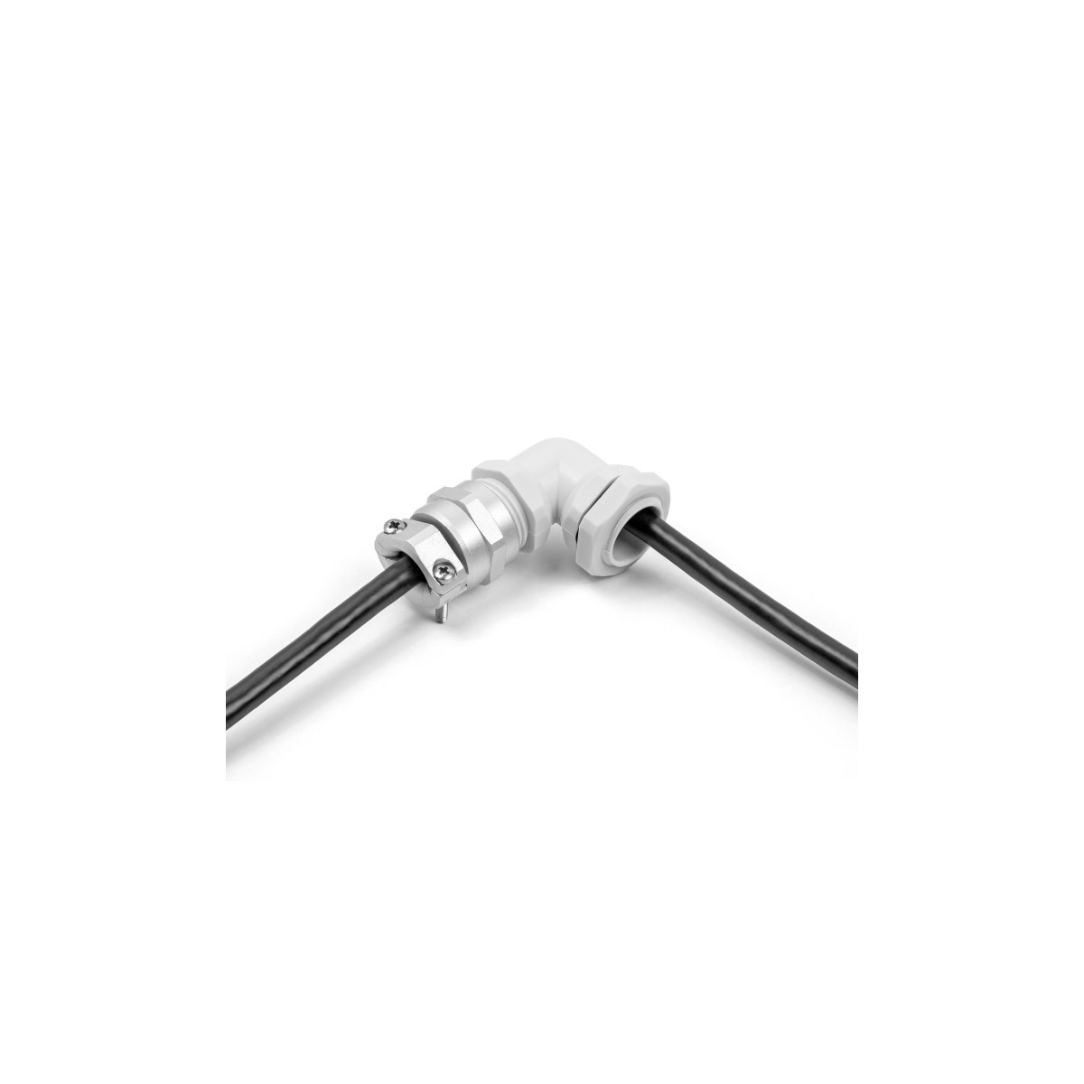 The screw-on strain relief fixes the cable and protects it from excessive bending, e.g. in machinery. The cable remains in their original position even during vibrations and they cannot fall out.