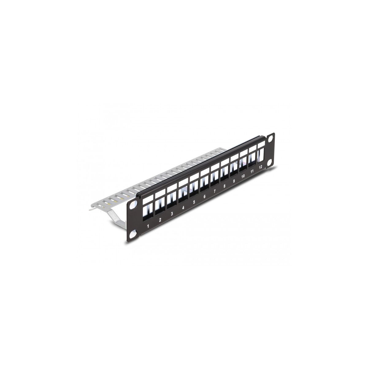 Delock 10″ Keystone Patch Panel 12 port with strain relief 1U black