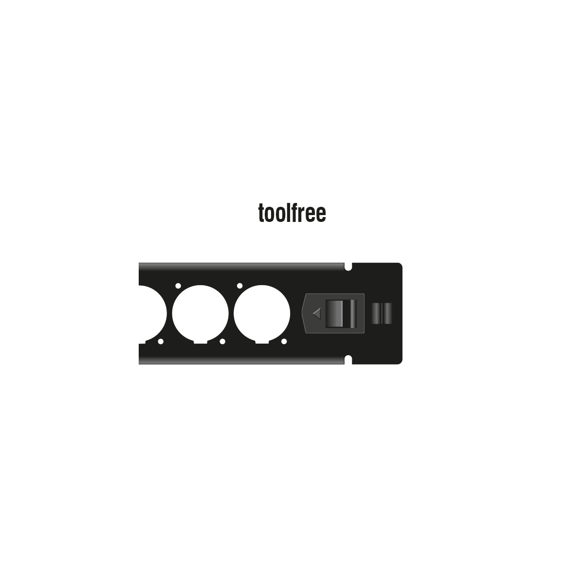 The special feature of this patch panel is that no tools are required for installation in a network cabinet. The integrated mounting clips can simply be pushed outwards to lock the panel in place.