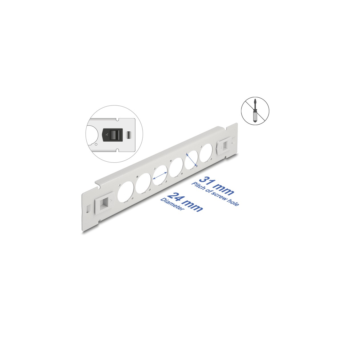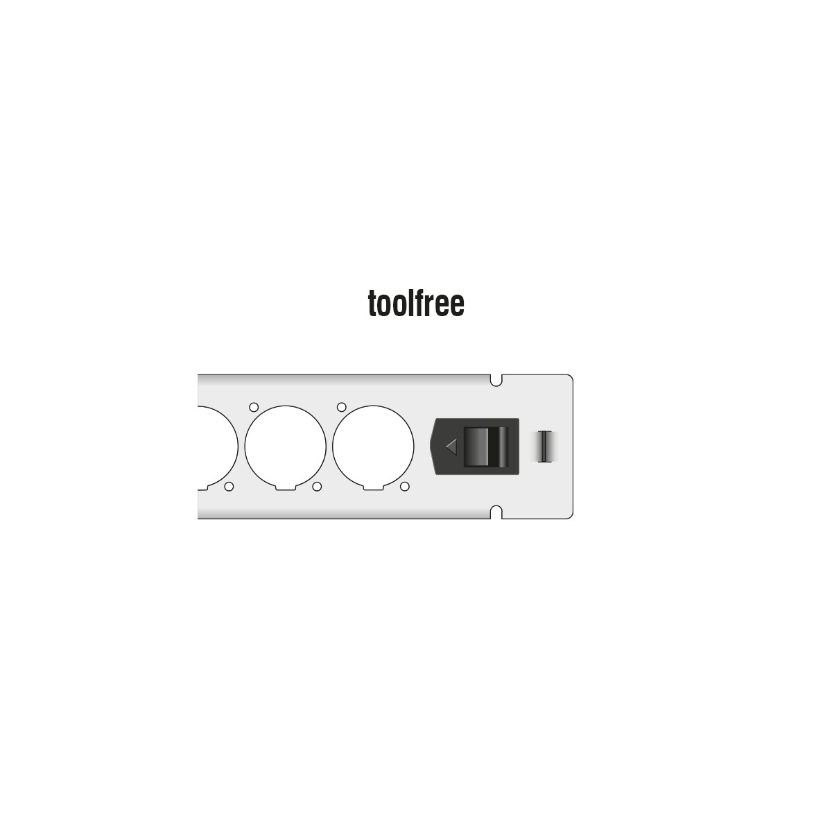 The special feature of this patch panel is that no tools are required for installation in a network cabinet. The integrated mounting clips can simply be pushed outwards to lock the panel in place.