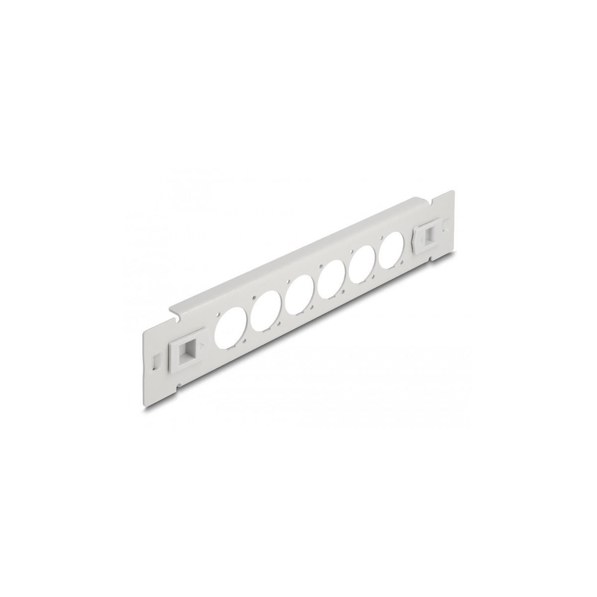 This patch panel by Delock can be mounted in a 10″ rack. With its standardized dimensions, it is suitable for easy mounting of 6 D-type modules.