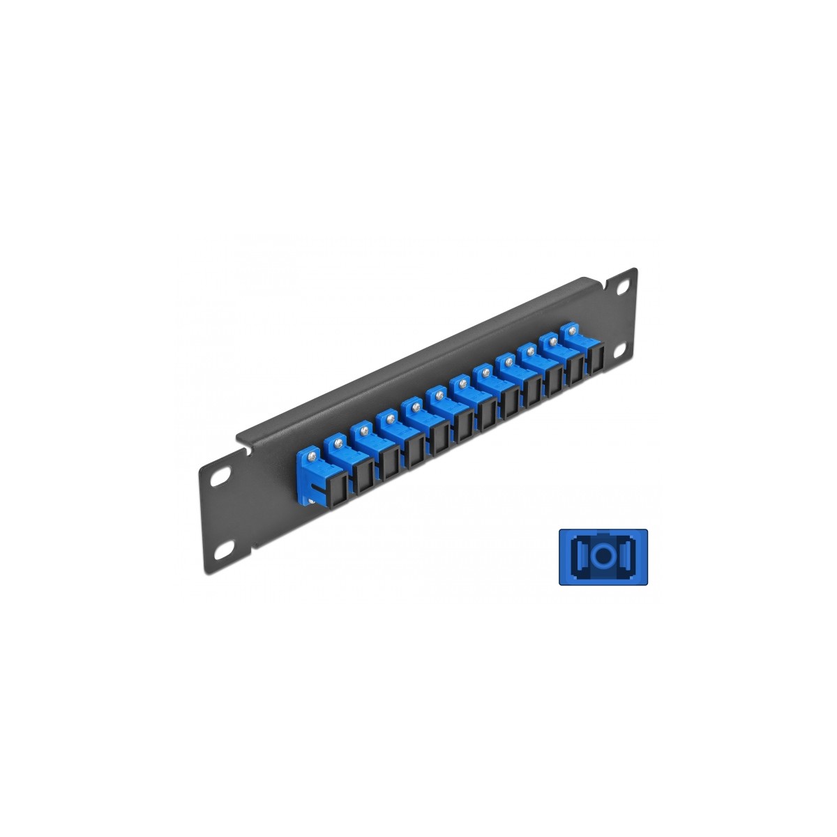 Delock 10″ Fiber Optic Patch Panel 12 Port SC Simplex blue 1U black