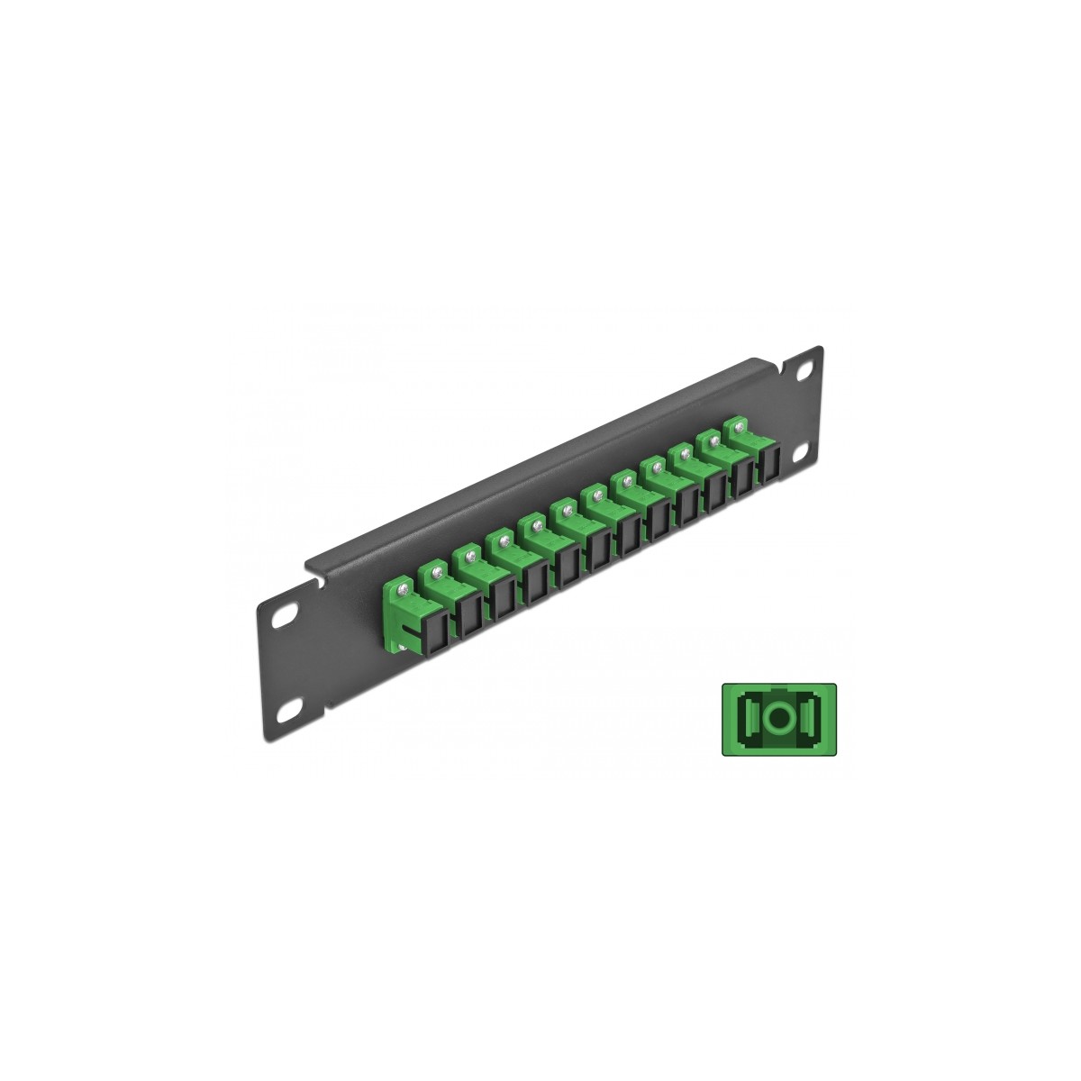 Delock 10″ Fiber Optic Patch Panel 12 Port SC Simplex green 1U black