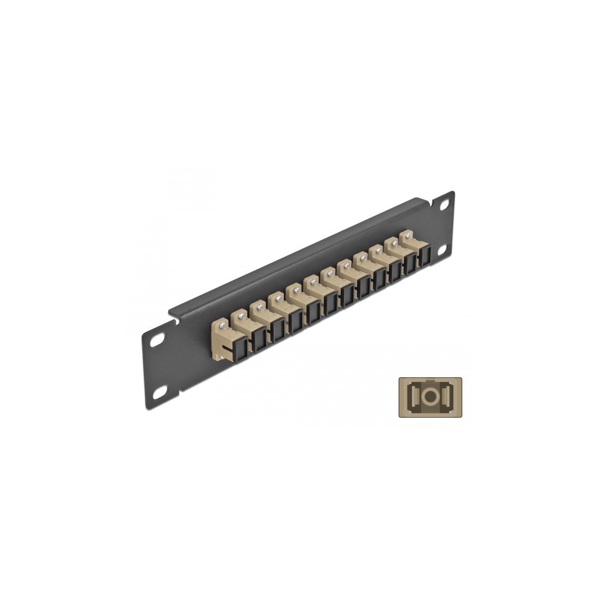 Delock 10″ Fiber Optic Patch Panel 12 Port SC Simplex beige 1U black