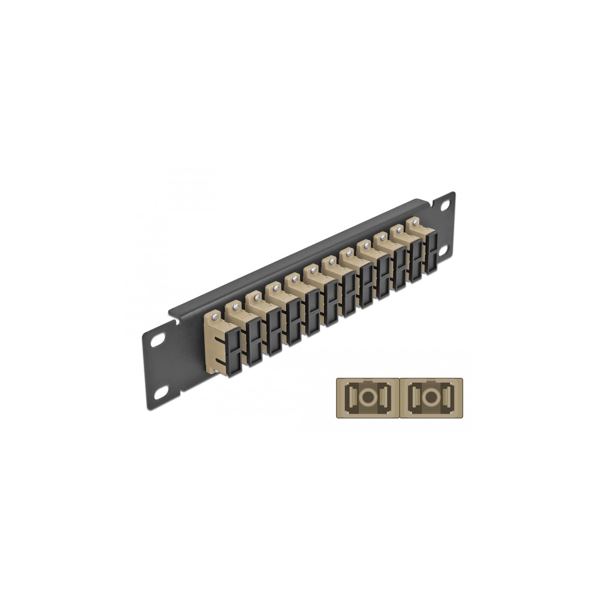 Delock 10″ Fiber Optic Patch Panel 12 Port SC Duplex beige 1U black