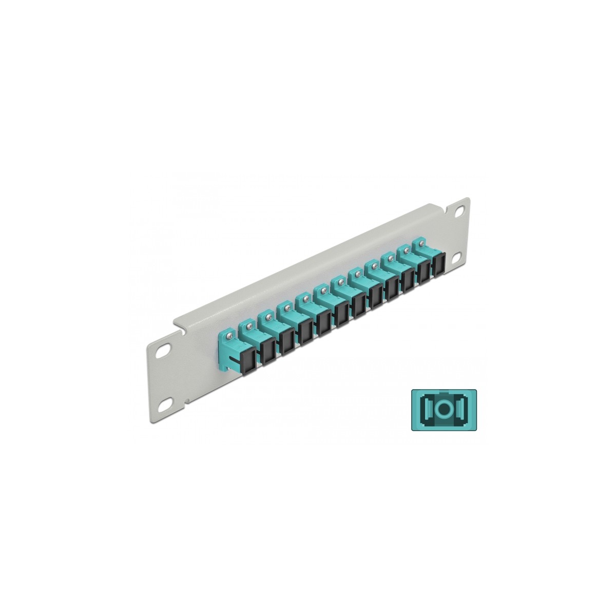 Delock 10″ Fiber Optic Patch Panel 12 Port SC Simplex aqua 1U grey