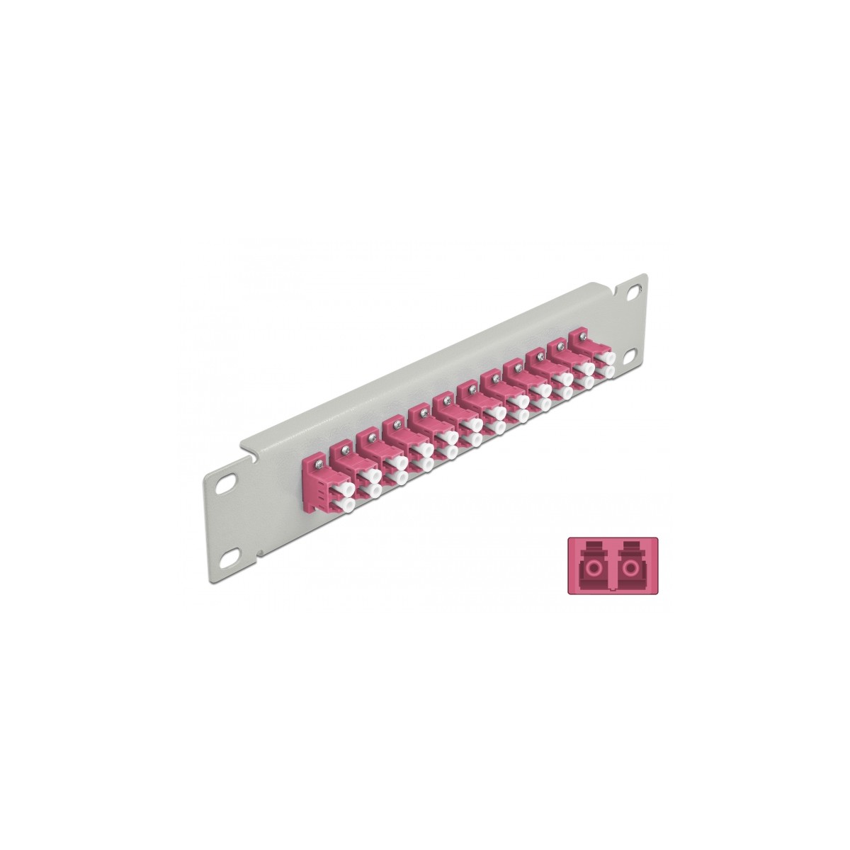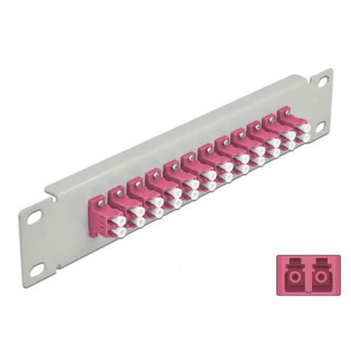 Delock 10″ Fiber Optic Patch Panel 12 Port LC Duplex violet 1U grey