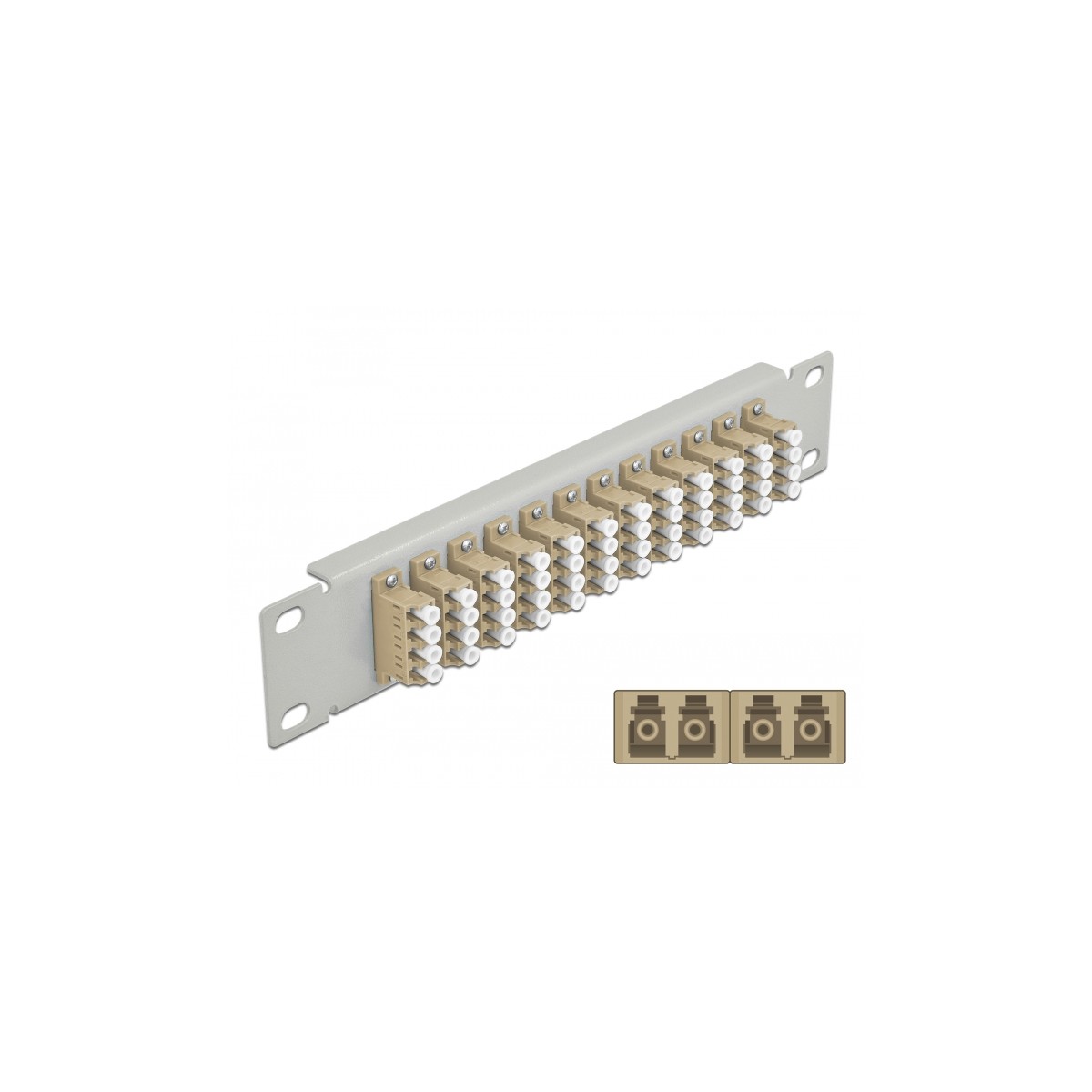 Delock 10″ Fiber Optic Patch Panel 12 Port LC Quad beige 1U grey