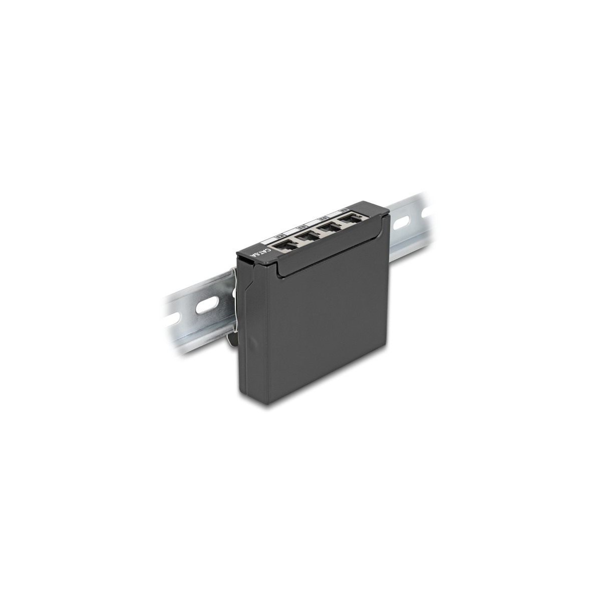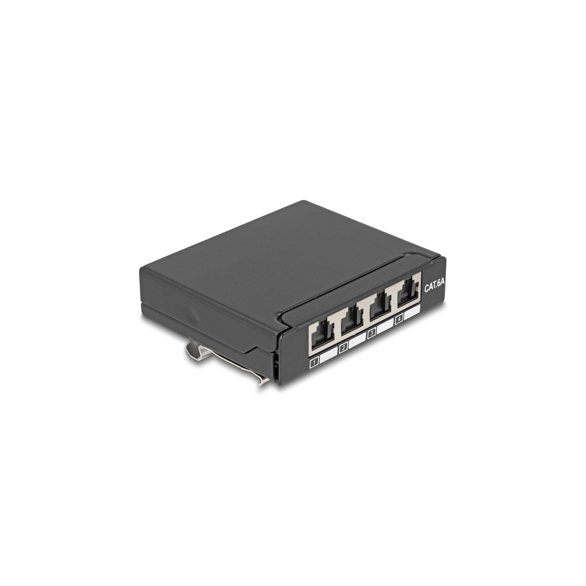 Delock Mini Desktop Patch Panel RJ45 jack 4 port Cat.6A shielded black - for mounting on a table, wall or DIN rail