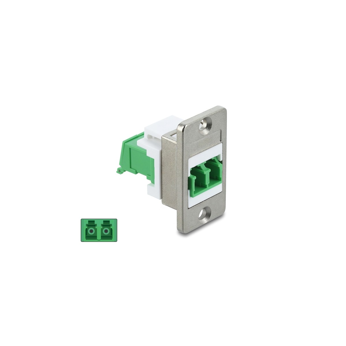Delock Panel Mount LC Duplex female to LC Duplex female with laser protection flip inside silver / green / white