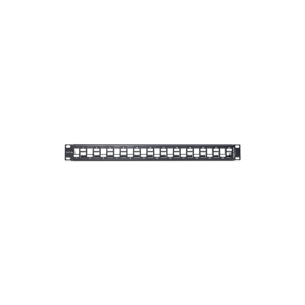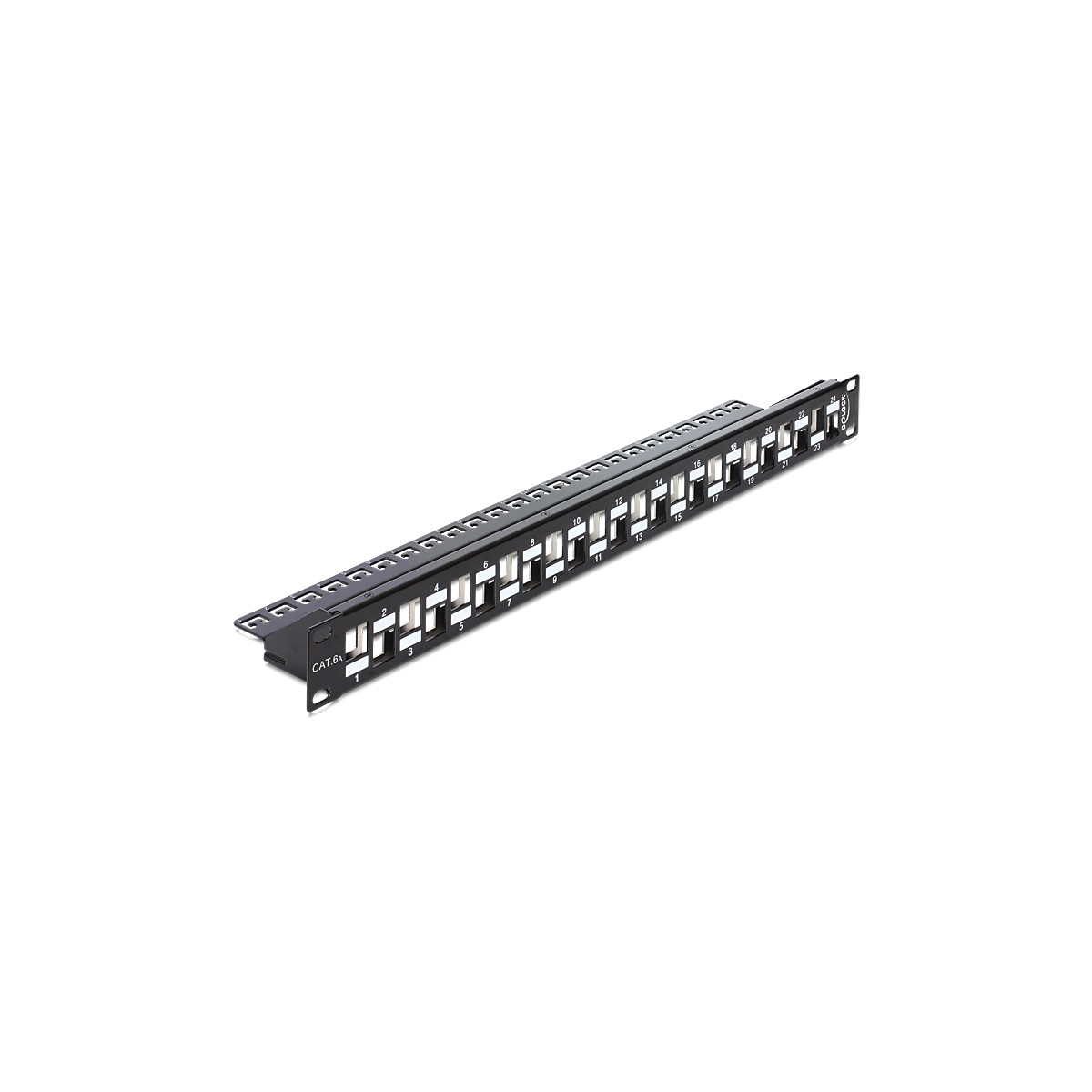 This Patch Panel by Delock can be mounted in a 19″ rack. With its standardized dimensions, it is suitable for easy snap-in mounting of 24 Keystone modules.