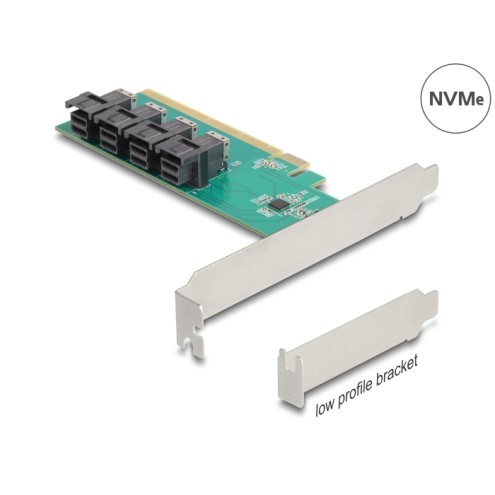Delock PCI Express x16 Card to 4 x internal SFF-8643 NVMe - Bifurcation - Low Profile Form Factor