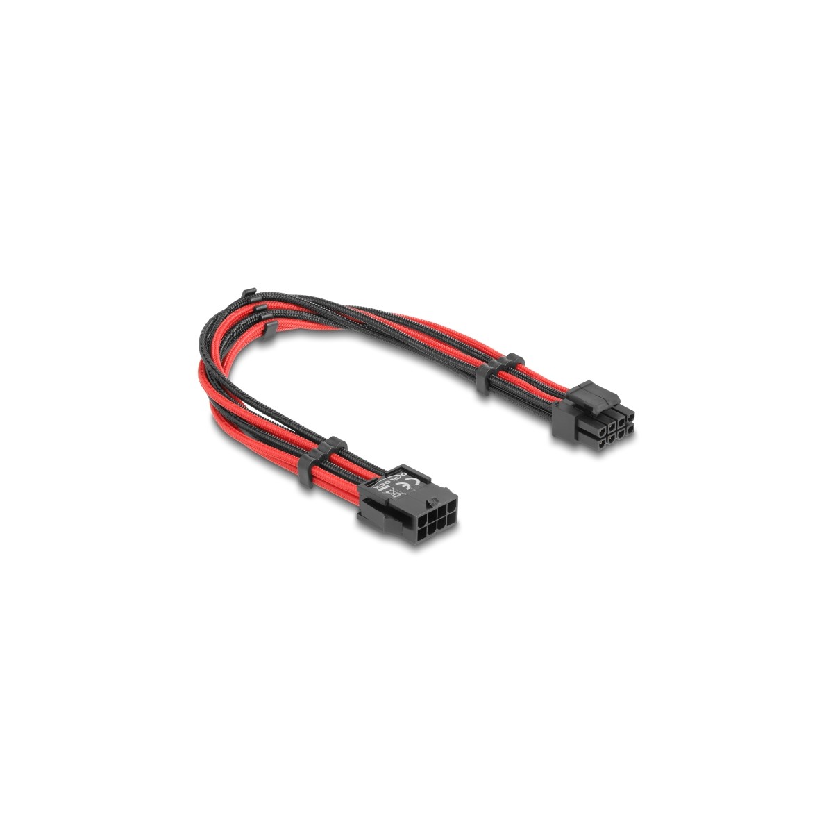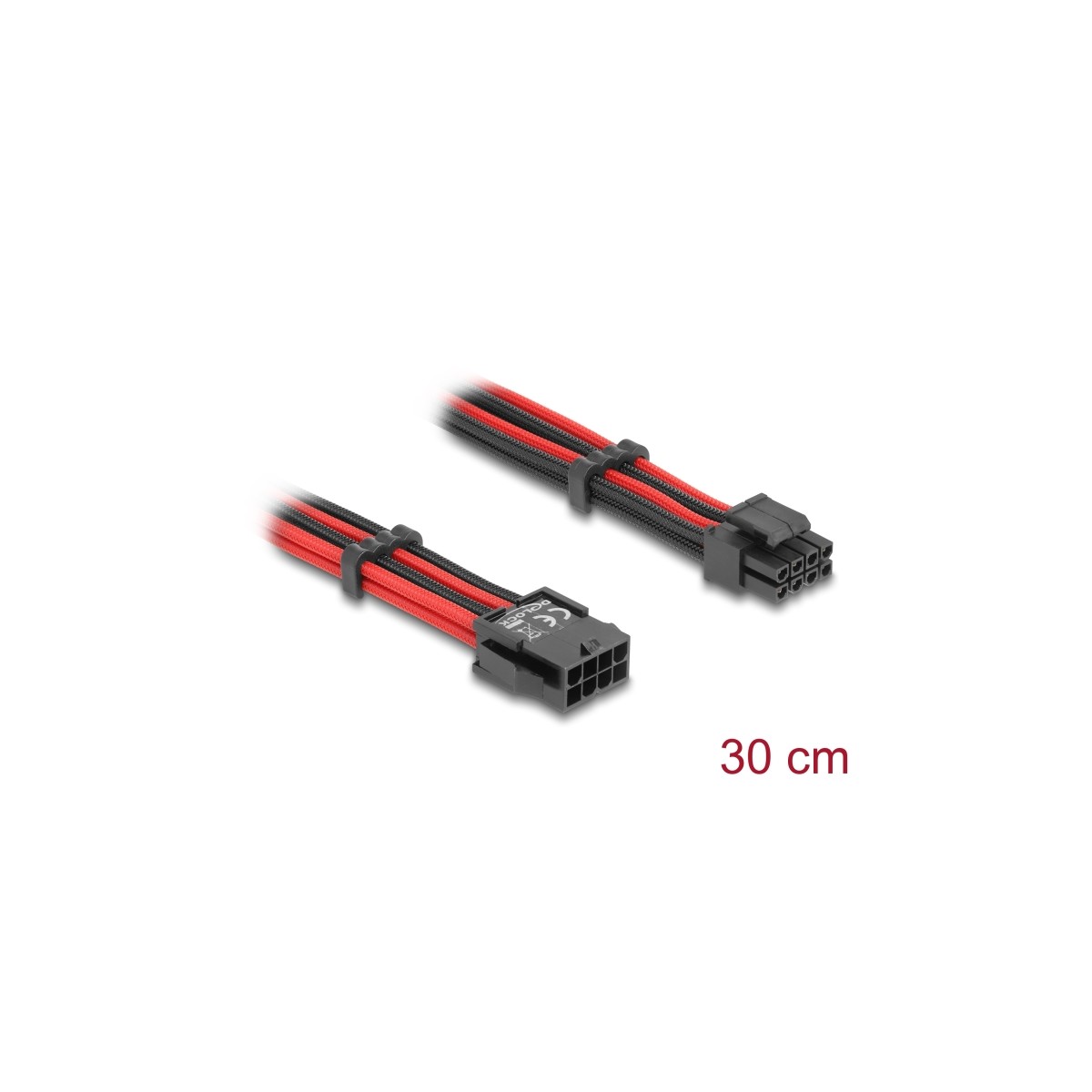 Delock Extension Cable 8 pin EPS male to 4 + 4 pin EPS female textile shielding red-black 30 cm