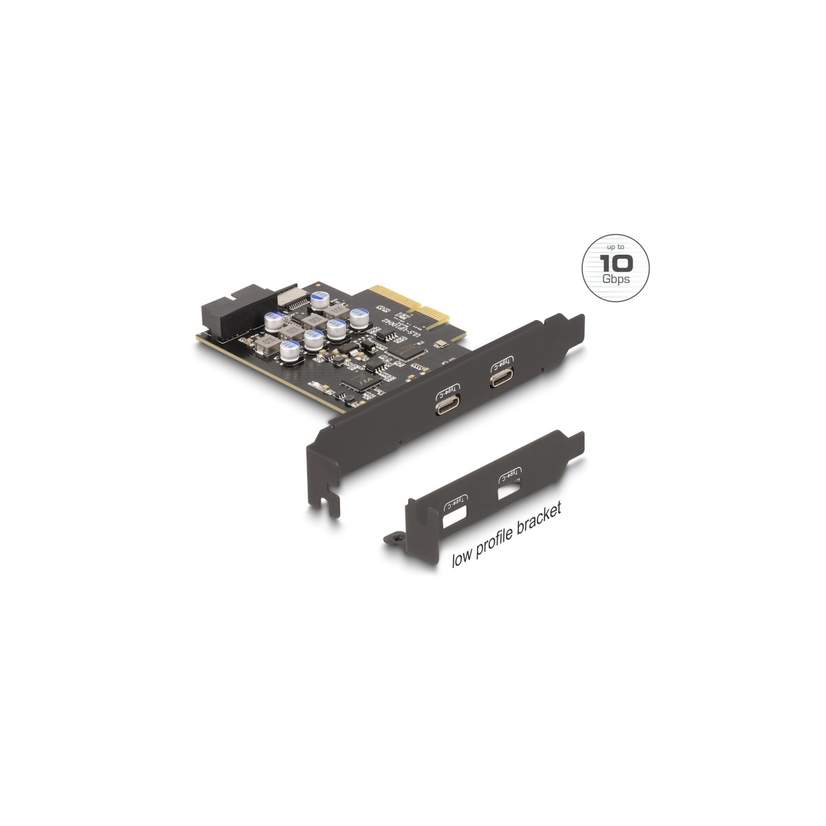 Delock PCI Express x4 Card to 2 x external USB Type-C™ + 1 x internal USB 10 Gbps Type-E Key A and 1 x 19 pin USB pin header mal