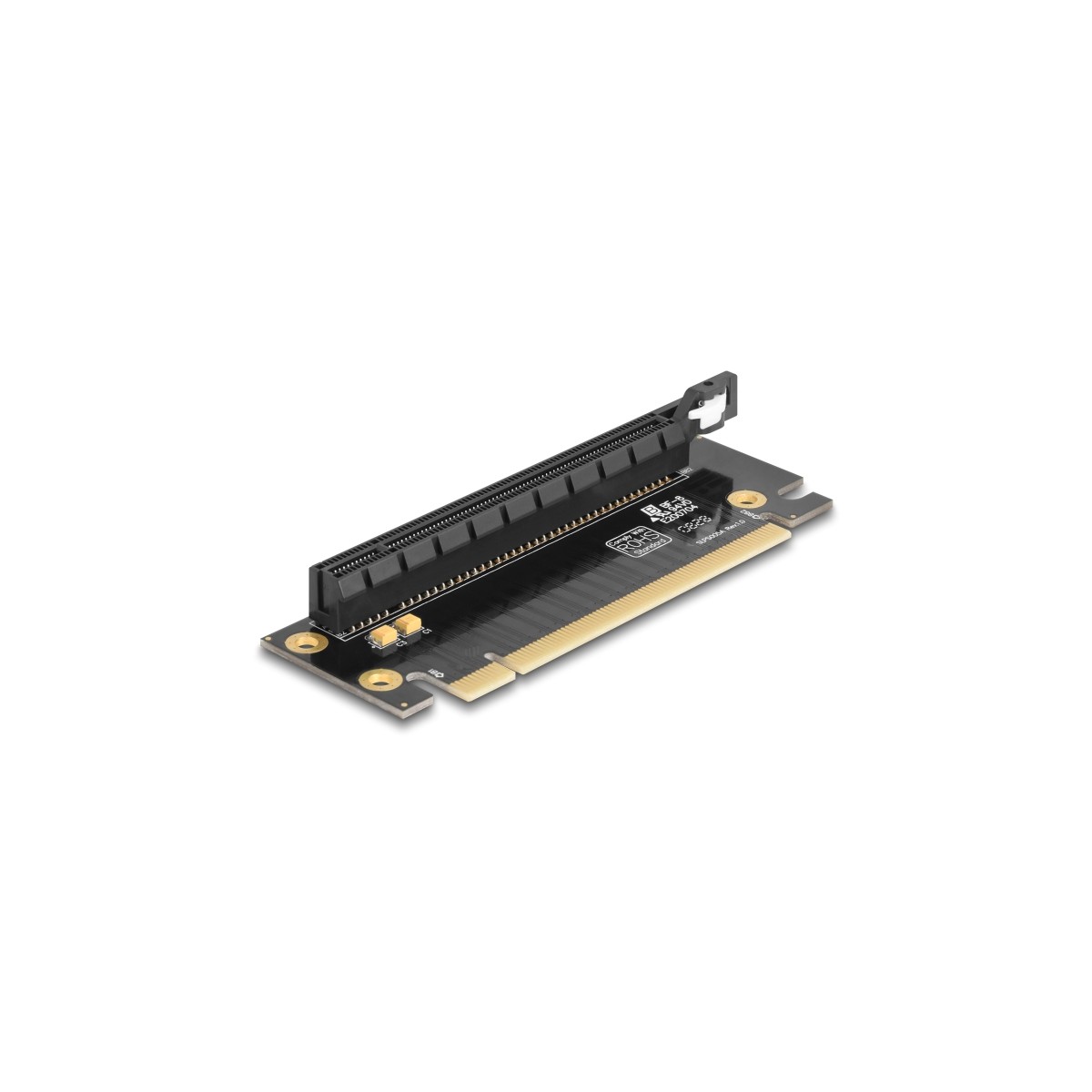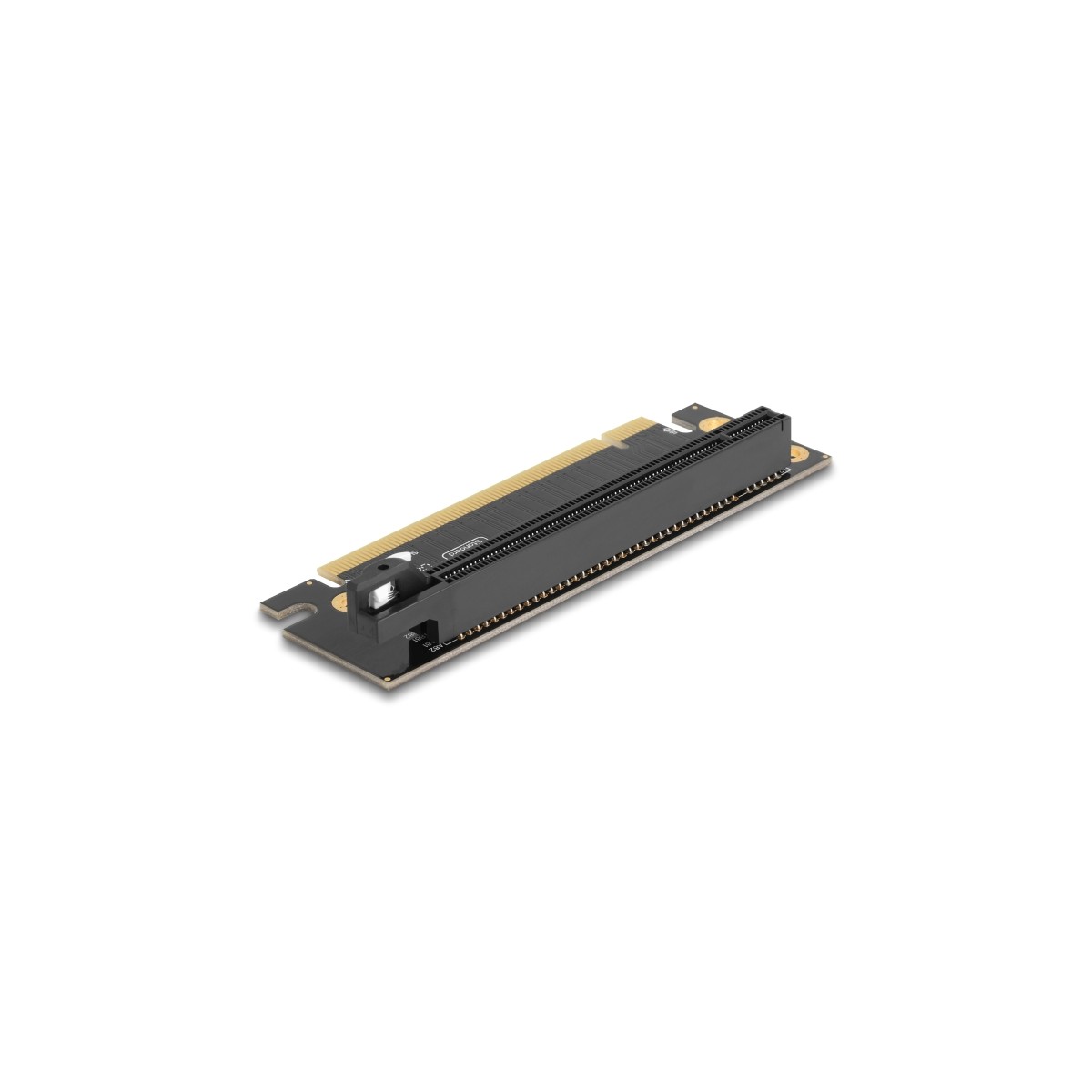 The PCI Express riser card by Delock enables the connection of a PCI Express x16 card. This type of horizontal installation is necessary in various rack mount cases, where a vertical installation is not possible due to space limitation.