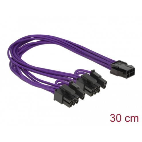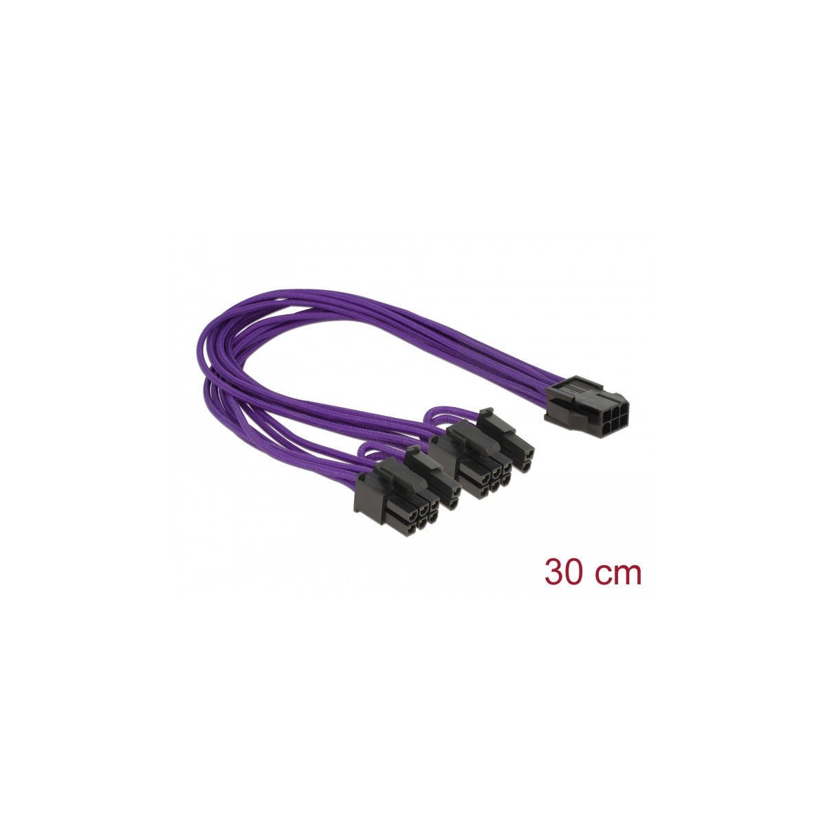 Delock Power Cable PCI Express 6 pin female 2 x 8 pin male textile shielding purple