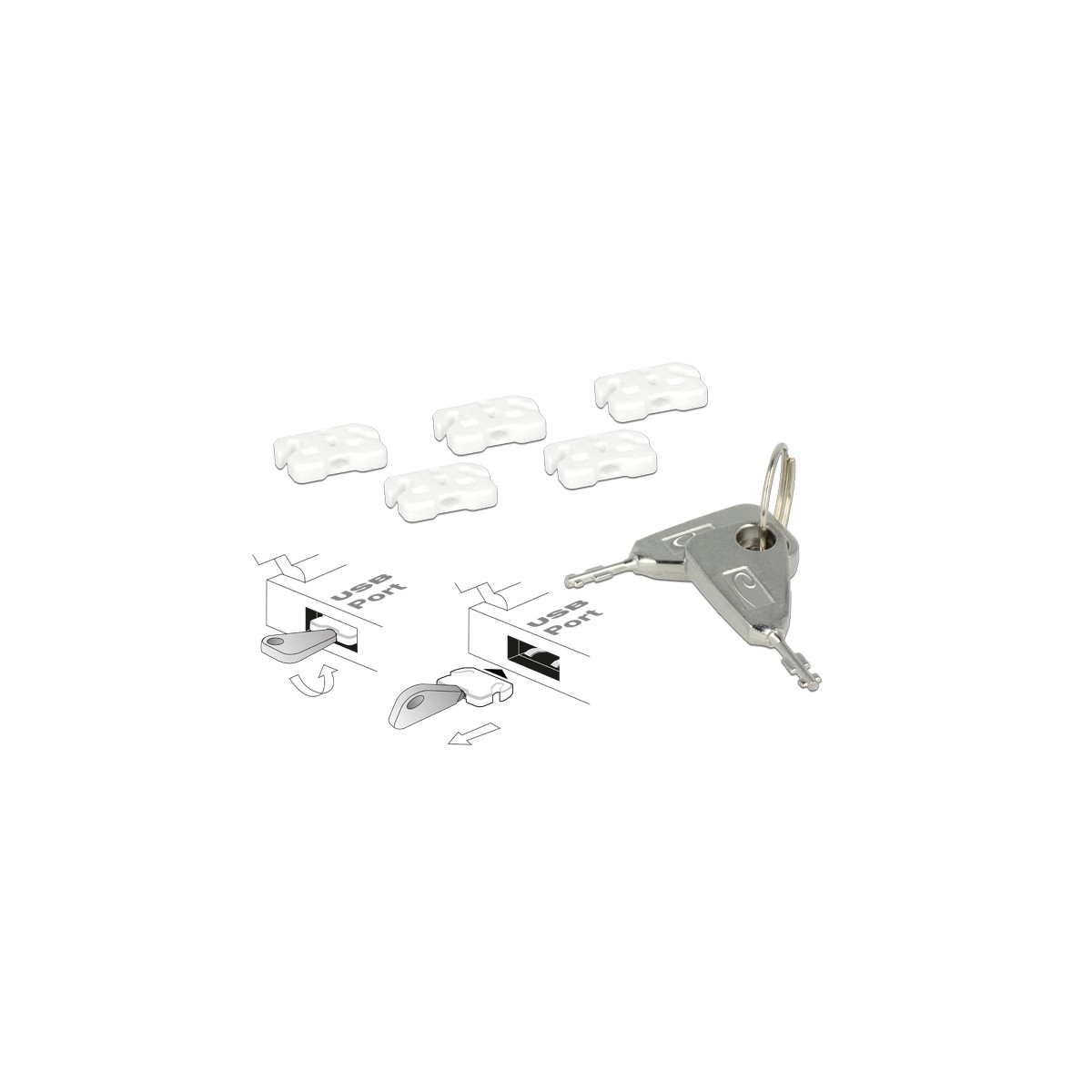This Delock USB Port Blocker set can be used to secure a USB Type-A female port against unauthorised access. Therefor plug a Port Blocker into the USB female port– the female port is locked now. An access through a cable or USB stick is not possible anymore. To remove the Port Blocker just use the enclosed tool.