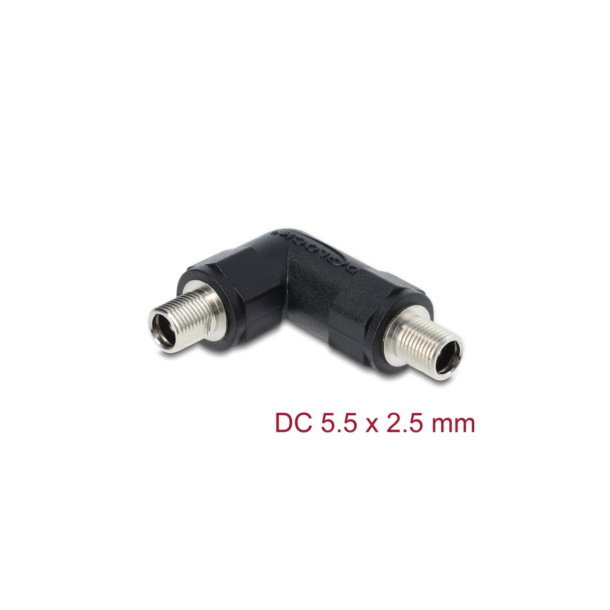 Delock DC Barrel Jack Adapter DC 5.5 x 2.5 mm female to female with thread angled 90°