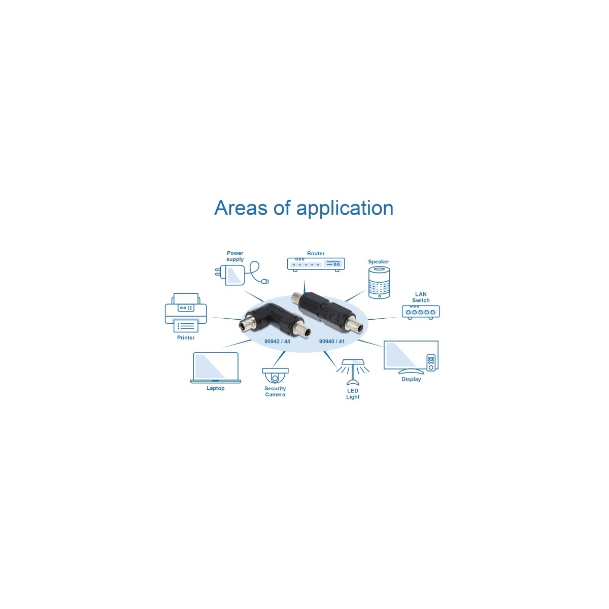 The DC adapter by Delock is suitable for reliable power supplies and for screw mounting on devices, panels or simply as a cable coupling. DC connectors can be connected both with and without union nut.
