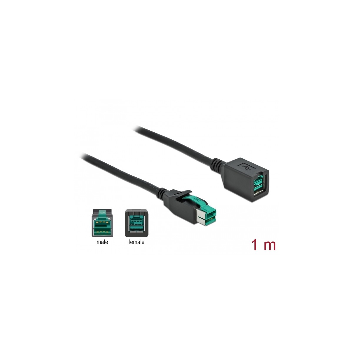 This cable by Delock allows the extension of a PoweredUSB connection and can be used to connect various devices. The cable is used both for data transmission and for power supply of the connected device.
