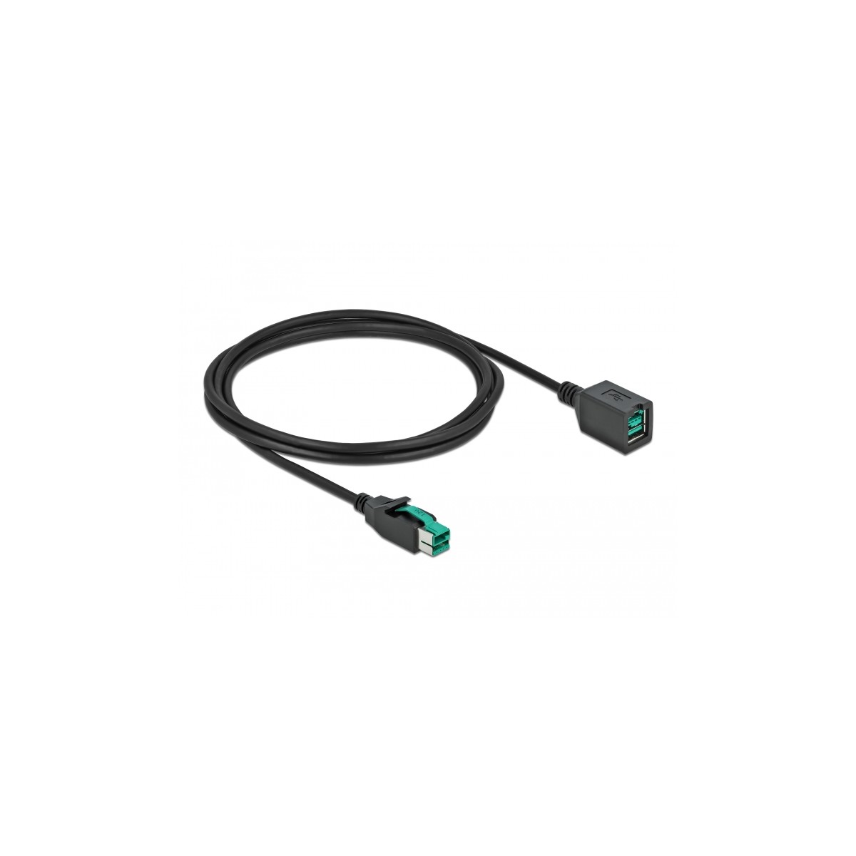 This cable by Delock allows the extension of a PoweredUSB connection and can be used to connect various devices. The cable is used both for data transmission and for power supply of the connected device.