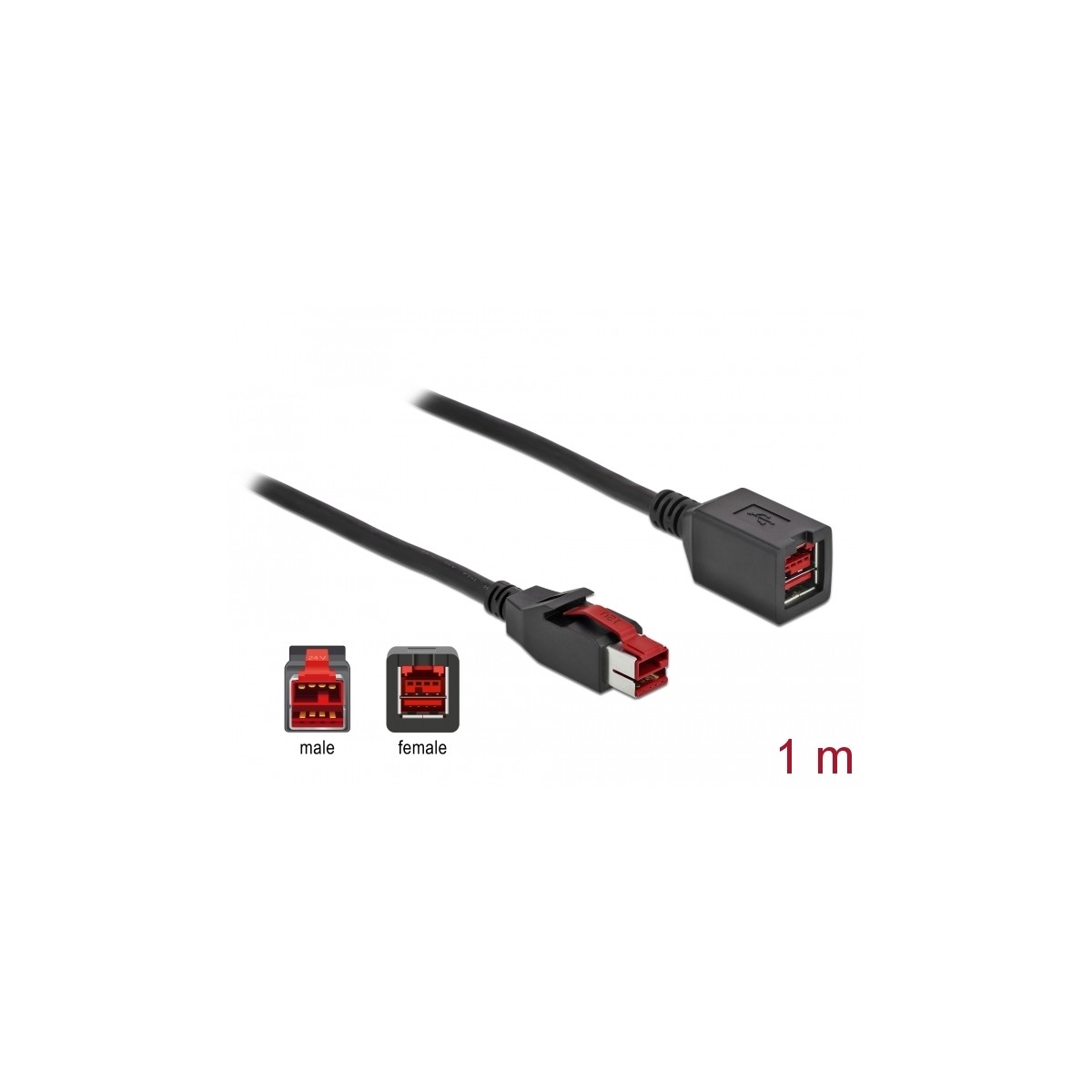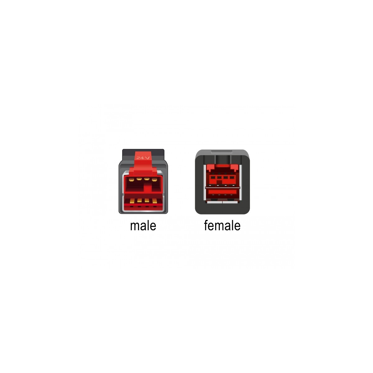 This cable by Delock allows the extension of a PoweredUSB connection and can be used to connect various devices. The cable is used both for data transmission and for power supply of the connected device.